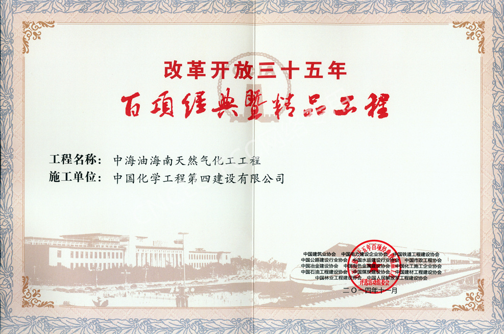 中海油海南天然氣化工工程改革開放35年百項(xiàng)經(jīng)典工程獎(jiǎng)