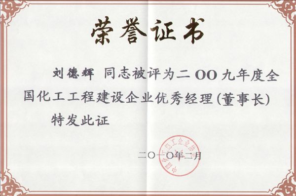 近日,經(jīng)中國化工施工企業(yè)協(xié)會(huì)評定,公司榮獲2009年度全國化工工程建設(shè)優(yōu)秀企業(yè),公司總經(jīng)理、黨委書記劉德輝榮獲“2009年度全國化工施工企業(yè)優(yōu)秀經(jīng)理(董事長)”光榮稱號(hào)。