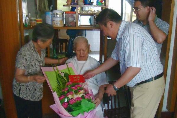 為了紀(jì)念抗日戰(zhàn)爭勝利65周年,8月17日,公司黨委副書記邢金湘、副經(jīng)理何玉文帶領(lǐng)公司離退辦負(fù)責(zé)人看望了公司參加抗日戰(zhàn)爭的吳深源、孫長寅、白文清、石伯秋4名老戰(zhàn)士,代表公司為他們送去了慰問金。