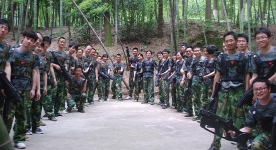 訓練的第一個項目是鐳戰(zhàn)對抗。4個隊迅速組成兩個對抗的隊伍,經過兩場激戰(zhàn),最終龍之隊和紅牛隊以飽滿的戰(zhàn)斗激情取得開門紅。第二個項目為沼澤浮橋。考驗團隊協作和邏輯思維能力,每個隊伍利用三個油桶和兩塊木板,讓所有隊員一起通過一片沼澤地,整個過程只有油桶可以接觸地面,方法不限,所用時間最少者獲勝。尖兵隊和紅牛隊領先到達目的地。