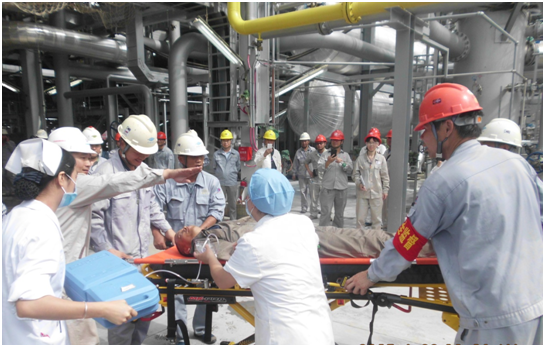 此次觀摩活動是公司2017年度“安全生產(chǎn)月”和“安全生產(chǎn)萬里行”計劃系列活動之一,其目的是進一步加強公司施工安全生產(chǎn)管理,落實企業(yè)安全生產(chǎn)主體責任,規(guī)范項目施工安全生產(chǎn)標準化工作,推動工程項目施工標準化建設(shè)和精品工程建設(shè),提升公司工程項目施工的質(zhì)量、安全和品質(zhì)。來自各分公司的書記、分管安全的副經(jīng)理、安全負責人等20多家單位(部門)的30多人參加了這次觀摩活動。 觀摩活動以O(shè)CU項目“氮氣窒息事故應(yīng)急救援演練”拉開帷幕。