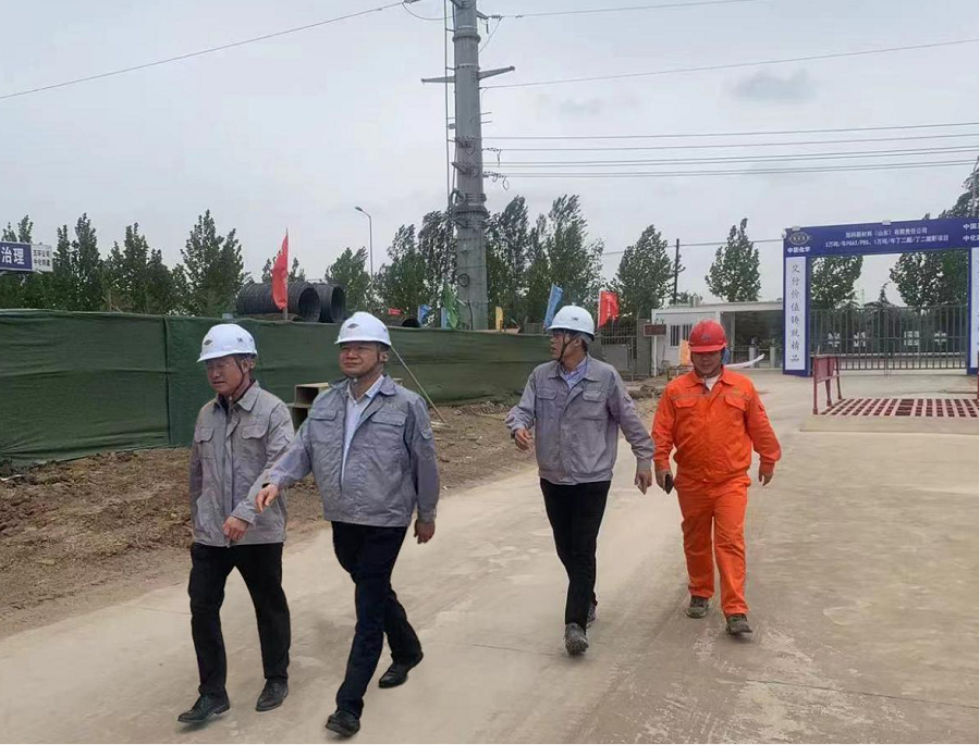 交流結束后,周鴻在項目經(jīng)理張軍峰的陪同下來到旭科新材料項目(一期)施工現(xiàn)場,仔細查看了項目建設情況,詳細詢問項目安全生產(chǎn)建設、規(guī)范管理等情況,對項目安全、防疫等工作提出要求。他強調,項目部全體人員一是要提高政治站位,確保一手抓疫情防控不動搖,一手抓生產(chǎn)經(jīng)營不動搖。二是項目部要立足自主創(chuàng)新,組織技術人員攻堅克難,做好丁二酸項目的新技術研發(fā)工作。三是要快速推動土建工程收尾工作,提前策劃推進安裝工程早日落地、早見實效。