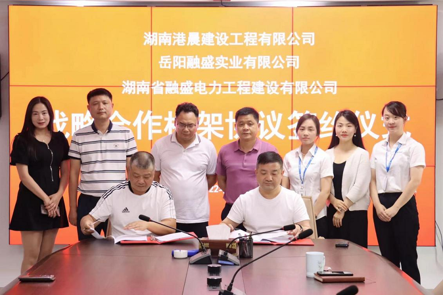 6月15日,湖南港晨建設(shè)工程有限公司與湖南省融盛電力工程建設(shè)有限公司、岳陽(yáng)融盛實(shí)業(yè)有限公司簽署戰(zhàn)略合作框架協(xié)議。港晨公司黨支部書記、董事長(zhǎng)王建偉,總經(jīng)理李琦,副總經(jīng)理兼總工程師嚴(yán)偉,岳陽(yáng)融盛實(shí)業(yè)有限公司董事長(zhǎng)陳志剛,副總經(jīng)理李波濤參加簽約儀式。