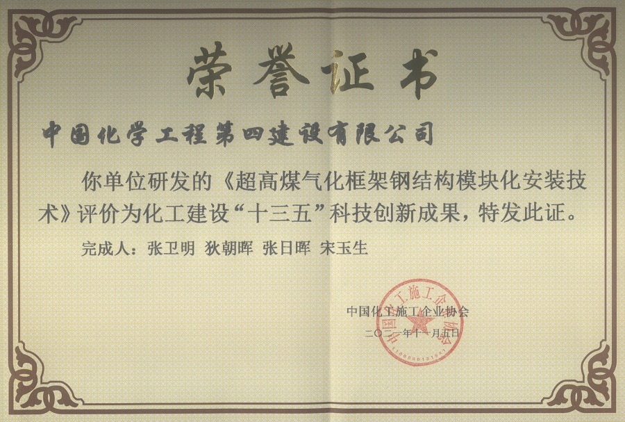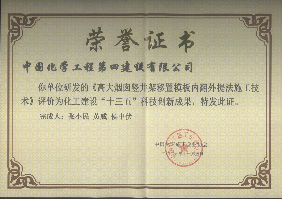 7月25日,從化工協(xié)會(huì)十屆三次會(huì)員代表大會(huì)暨科技創(chuàng)新大會(huì)傳來(lái)喜訊,公司榮獲兩項(xiàng)化工建設(shè)“十三五”科技創(chuàng)新成果獎(jiǎng),分別為華南公司完成的高大煙囪豎井架移置模板內(nèi)翻外提法施工技術(shù)和華東公司完成的超高煤氣化框架鋼結(jié)構(gòu)模塊化安裝技術(shù)。
