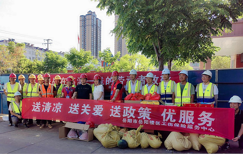 近日,岳陽樓區(qū)人社局副局長彭可軍、工傷保險服務(wù)中心主任李平平一行來到市政工程公司岳陽市政府地塊雨污分流改造工程朝陽小學(xué)片區(qū)現(xiàn)場,開展“送清涼、送關(guān)愛、送政策”活動,為工友們送來清涼飲料、云南白藥氣霧劑、藿香正氣水等一系列降溫防暑物品,并耐心講解工傷保險業(yè)務(wù)辦理流程等相關(guān)政策規(guī)定。同時,叮囑大家做好防暑降溫工作,避開高溫作業(yè),保障自身安全也保障工程質(zhì)量。