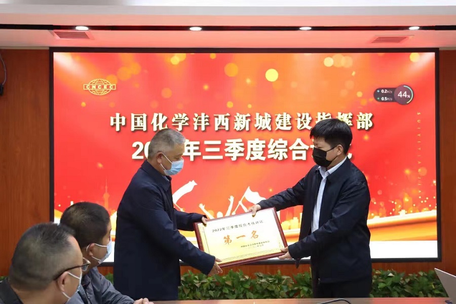 近日,中國化學(xué)灃西新城建設(shè)指揮部召開2022年四季度施工生產(chǎn)安全工作會。會上,華東公司西咸新區(qū)項目部獲“2022年三季度綜合考核評比第一名”。