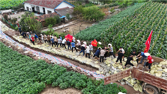 為積極響應(yīng)習(xí)近平總書記的重要指示精神,公司聞令而動,緊急組建防汛搶險突擊隊,運送搶險物料前往決堤處支援。6日凌晨,公司岳陽乙烯項目部調(diào)配土方車輛30余輛,裝滿塊石星夜出發(fā)前往現(xiàn)場支援。到7月8日22時,公司累計發(fā)送塊石資源990車,指揮人員及駕駛員549人,動用各類機械526輛,運輸3.465萬噸塊石前往決堤現(xiàn)場,為8日22時33分成功將決口封堵貢獻(xiàn)了力量。