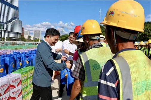 “伏天已至,感謝大家在高溫下堅(jiān)守崗位,你們辛苦啦?!痹陧?xiàng)目建設(shè)現(xiàn)場(chǎng),劉再衡向大家送上防暑降溫物品,詳細(xì)詢問職工們的工作情況,了解項(xiàng)目部防暑降溫和安全保障措施,再三叮囑管理人員和職工要合理安排作息時(shí)間,做好防暑降溫措施,確保大家工作開開心心、平平安安。希望職工們?cè)鰪?qiáng)自我保護(hù)意識(shí),做到勞逸結(jié)合,用良好的身心狀態(tài)來確保項(xiàng)目圓滿完工。