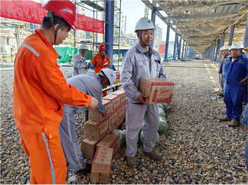 近日,中化勞務(wù)公司赴山東裕龍項(xiàng)目開展“夏日送清涼、防暑保安康”慰問活動(dòng),為高溫期間堅(jiān)守在一線的職工送上防暑物資,并開展了高溫施工應(yīng)急預(yù)案和防中暑知識(shí)普及。同時(shí),囑咐項(xiàng)目部合理安排作息時(shí)間,做好防暑降溫措施,讓職工們以良好的身心狀態(tài)確保項(xiàng)目順利推進(jìn)。