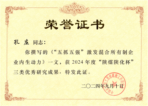 孔莊撰寫的政研論文獲評(píng)2024年度“陜煤陜化杯”三類優(yōu)秀成果
