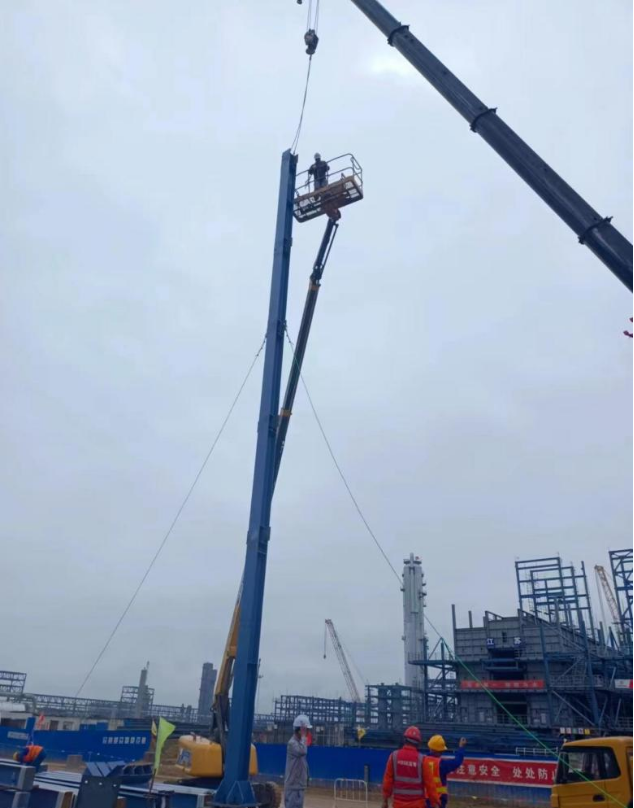 此次吊裝難度大,最大塔高度49米,穿衣戴帽后最大重量195噸。為組織好這兩臺(tái)塔器的吊裝工作,項(xiàng)目施工人員對(duì)設(shè)備吊裝過程的每一步“精打細(xì)算”,吊裝嚴(yán)格按照方案執(zhí)行并進(jìn)行技術(shù)交底。吊裝期間,項(xiàng)目主要管理人員堅(jiān)守現(xiàn)場(chǎng),對(duì)設(shè)備吊裝情況實(shí)時(shí)監(jiān)督,直至塔器順利安裝就位。此次吊裝,獲得監(jiān)理業(yè)主一致認(rèn)可,為后續(xù)施工打下了堅(jiān)實(shí)基礎(chǔ)。