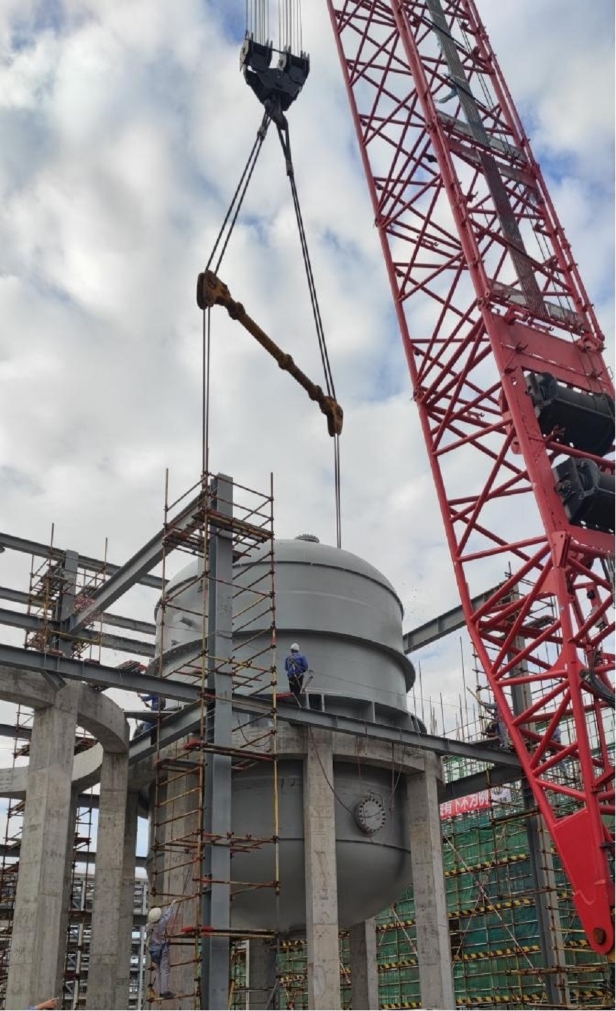 經(jīng)過項(xiàng)目部統(tǒng)籌安排,制定吊裝方案,強(qiáng)化現(xiàn)場協(xié)調(diào)與監(jiān)管,設(shè)備吊裝取得圓滿成功。