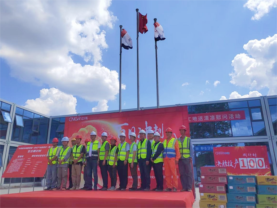 8月9日,由華南公司承建的開陽中偉年產(chǎn)20萬噸磷酸鐵一體化建設(shè)項(xiàng)目舉行“百日沖刺”誓師大會(huì)。