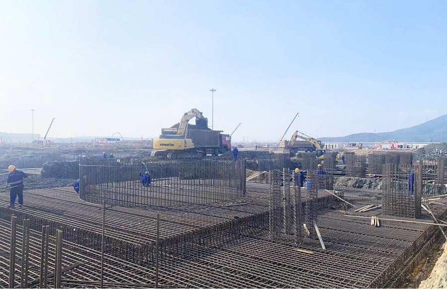 該裝置項目共有7個單元,自8月15日開工以來,項目部克服工期時間緊、地質巖石多、施工現場點多面廣、疫情防控難等諸多困難,全力搶抓進度。截至目前,初期雨水池池壁鋼筋已綁扎完成,氧化提濃單元核心設備基礎承臺澆筑完成,精餾單元各框架基礎陸續(xù)施工,異丙苯單元大面積開挖,裝置變電所基礎柱、梁混凝土澆筑完成。項目部將充分利用好當前晴好天氣,合理組織班組施工作業(yè),全力加快施工進度,確保完成各項既定任務,為黨的二十大勝利召開獻禮。