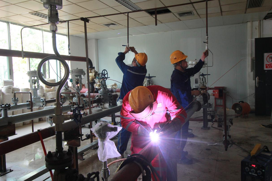 據(jù)了解,此次搶工包括11套流量計(jì)安裝,4套減溫減壓閥組裝,真空泵管道改建、上百組閥門(mén)安裝等。為確保優(yōu)質(zhì)高效完成施工任務(wù),項(xiàng)目克服人員不足、施工組織困難和疫情防控等不利因素,歷經(jīng)24小時(shí)連續(xù)施工,在9月21日?qǐng)A滿完成改建管道的拆除、恢復(fù)、回裝、試壓、吹掃及監(jiān)檢工作。