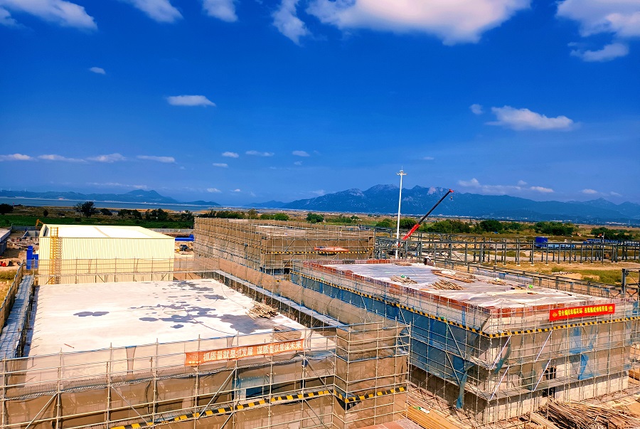 該項目位于福建省古雷石化產(chǎn)業(yè)園區(qū),基礎(chǔ)形式為樁基礎(chǔ),結(jié)構(gòu)形式為鋼筋混凝土框架結(jié)構(gòu)。自2022年7月開工以來,項目部全員克服施工圖紙嚴(yán)重滯后、夏季高溫天氣、疫情等影響,積極與業(yè)主、設(shè)計、監(jiān)理溝通,倒排施工進(jìn)度計劃,增加作業(yè)人員和施工周轉(zhuǎn)材料,合理安排施工。
