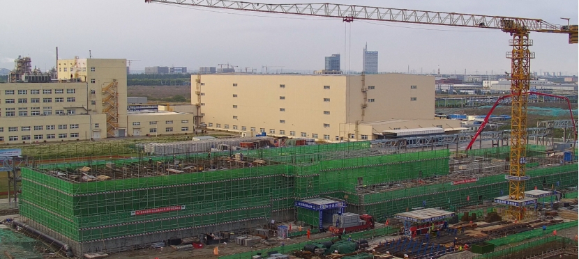中化勞務(wù)公司岳化新材料項目主裝置聚合廠房封頂