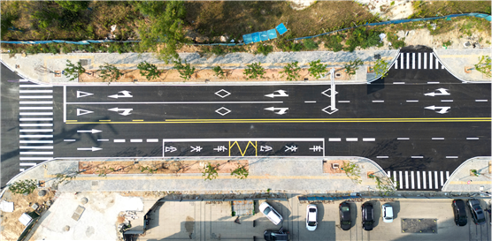 在道路修建過程中,項(xiàng)目團(tuán)隊(duì)充分發(fā)揮專業(yè)優(yōu)勢(shì),嚴(yán)格遵循施工技術(shù)規(guī)范,精心選用優(yōu)質(zhì)的瀝青材料。為了提高攤鋪效率和碾壓密實(shí)度,項(xiàng)目團(tuán)隊(duì)采用了兩臺(tái)攤鋪機(jī)聯(lián)鋪等科學(xué)有效的施工措施,嚴(yán)格控制瀝青混合料在施工過程中的溫度損失,有效提高瀝青混合料的熱穩(wěn)定性和耐磨性。此外,項(xiàng)目團(tuán)隊(duì)還加強(qiáng)了現(xiàn)場(chǎng)觀測(cè),使瀝青面層的平整度和穩(wěn)定性達(dá)到最佳狀態(tài),確保了項(xiàng)目的順利竣工。