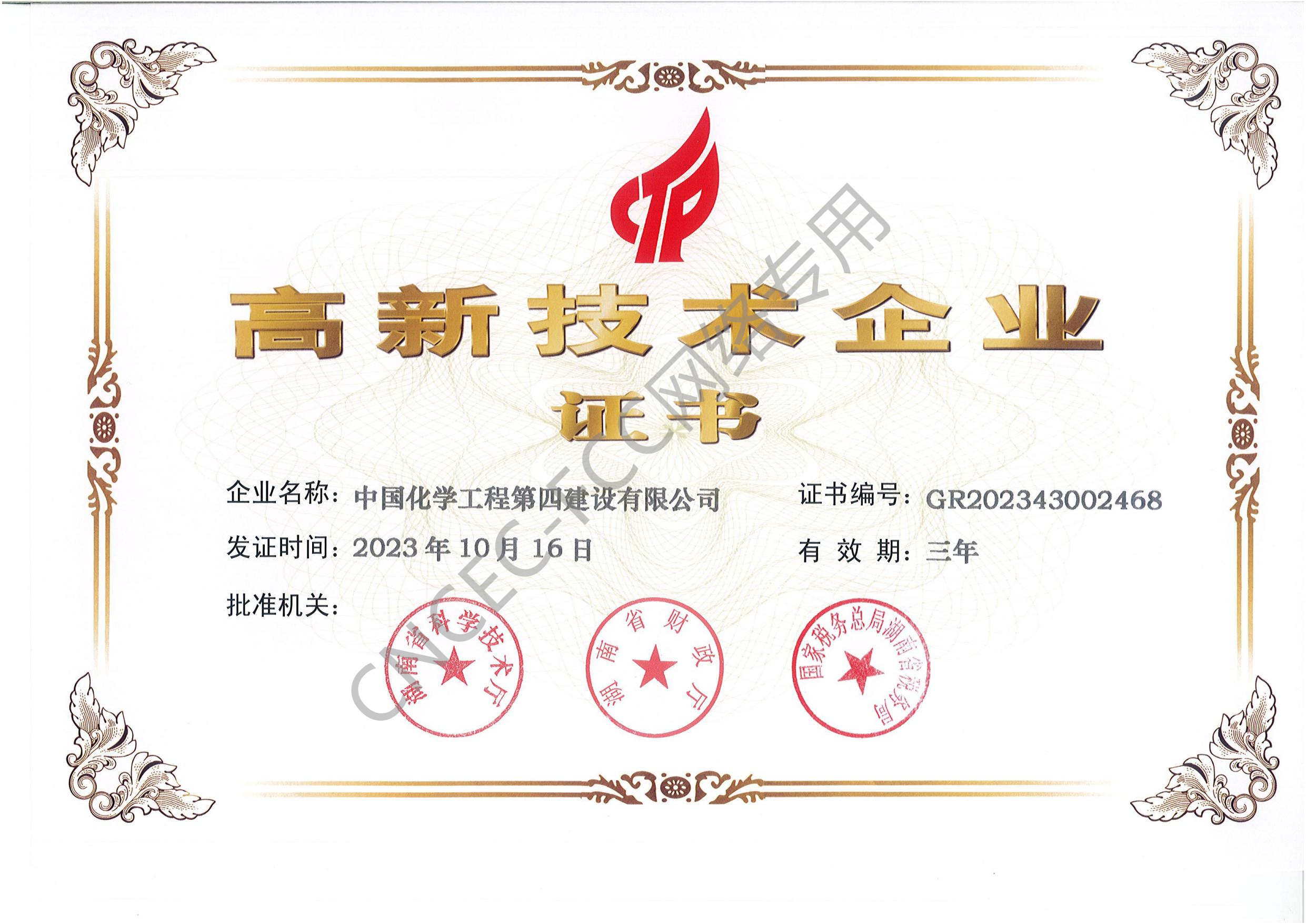 高新技術(shù)企業(yè)證書(shū)